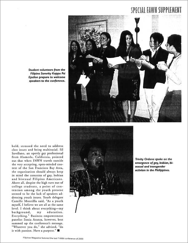 Filipinas Magazine and FWN of San Francisco hosted the FAWN 2000 conference in San Mateo California in March 3-5, 2000.